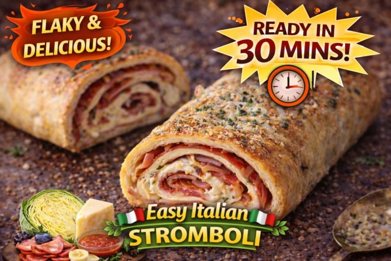 Easy Italian Stromboli is a flaky, golden-baked savory roll filled with Italian meats, melted cheese, and aromatic herbs wrapped inside …