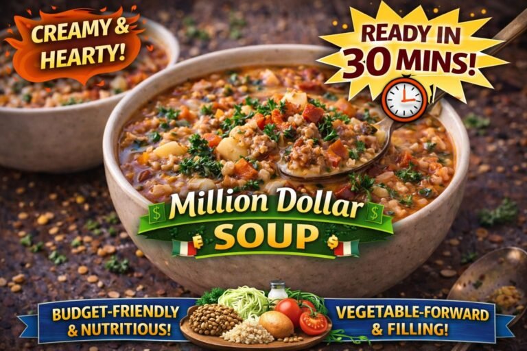 Million Dollar Soup is a hearty, budget-friendly vegetable soup packed with cabbage, lentils, tomatoes, rice, and warming spices. Despite its …